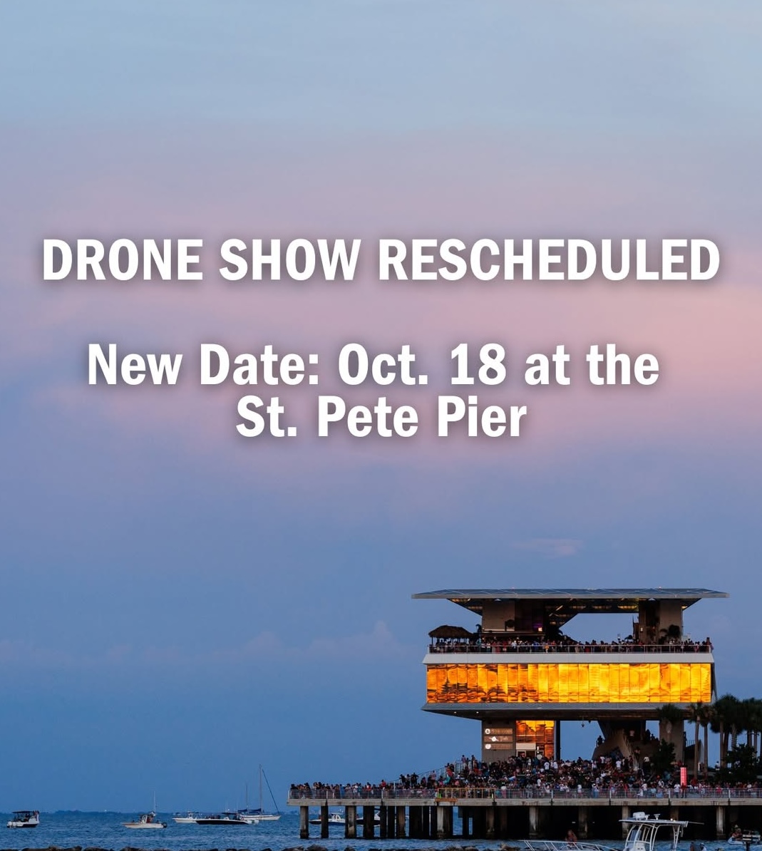 Originally scheduled for July 27, the highly anticipated 727 Day Drone Show was postponed due to severe weather. Good news for St. Pete locals and visitors, the show is back on the calendar! Mark your calendars for Friday, October 18 at 8 PM, with a rain date set for Saturday, October 19.